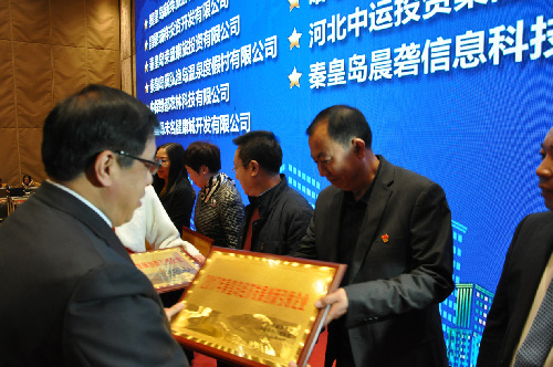 市领导为晨砻颁发“2017年秦皇岛经济发展创新引领企业”奖牌