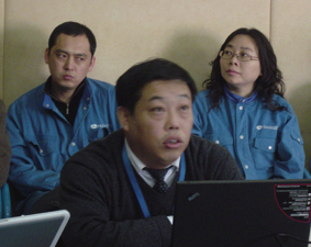 接下来,从现场参观回来,又回到了会议室,听取了重点针对EAM的详细报告。EAM项目总监于立新首先针对EAM在“3E”工程中的地位以及秦电EAM实施的历程进行了简单的介绍,然后重点介绍了此次EAM升级实施的目标和实施过程,之后对此次实施涉及的各个模块业务进行了介绍和演示。介绍演示的功能主要有:项目管理、物资管理、设备台帐、工单、缺陷、生产运行管理、财务业务一体化等。