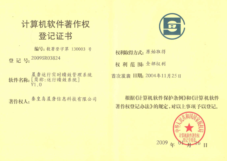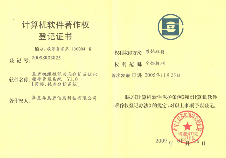 2009年2月10日,“晨砻机组性能动态分析及优化指导管理系统V1.0 (简称:耗差分析系统)”和“晨砻运行实时绩效管理系统V1.0 (简称:运行绩效系统)”两系统分别获得了中华人民共和国国家版权局颁发的计算机软件著作权登记证书。