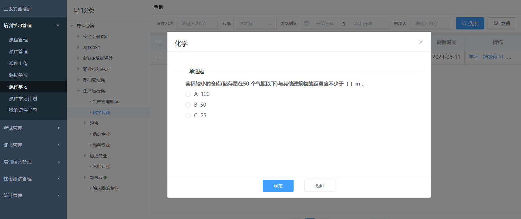 为解决各发电企业培训内容资源短缺问题,晨砻在线培训考试系统结合电力行业最新培训要求和课程内容,搭建了生产运行、职能部门管理、电力安全规程、职业技能鉴定、专题类培训五大类题库,满足发电企业500多个岗位培训需求。