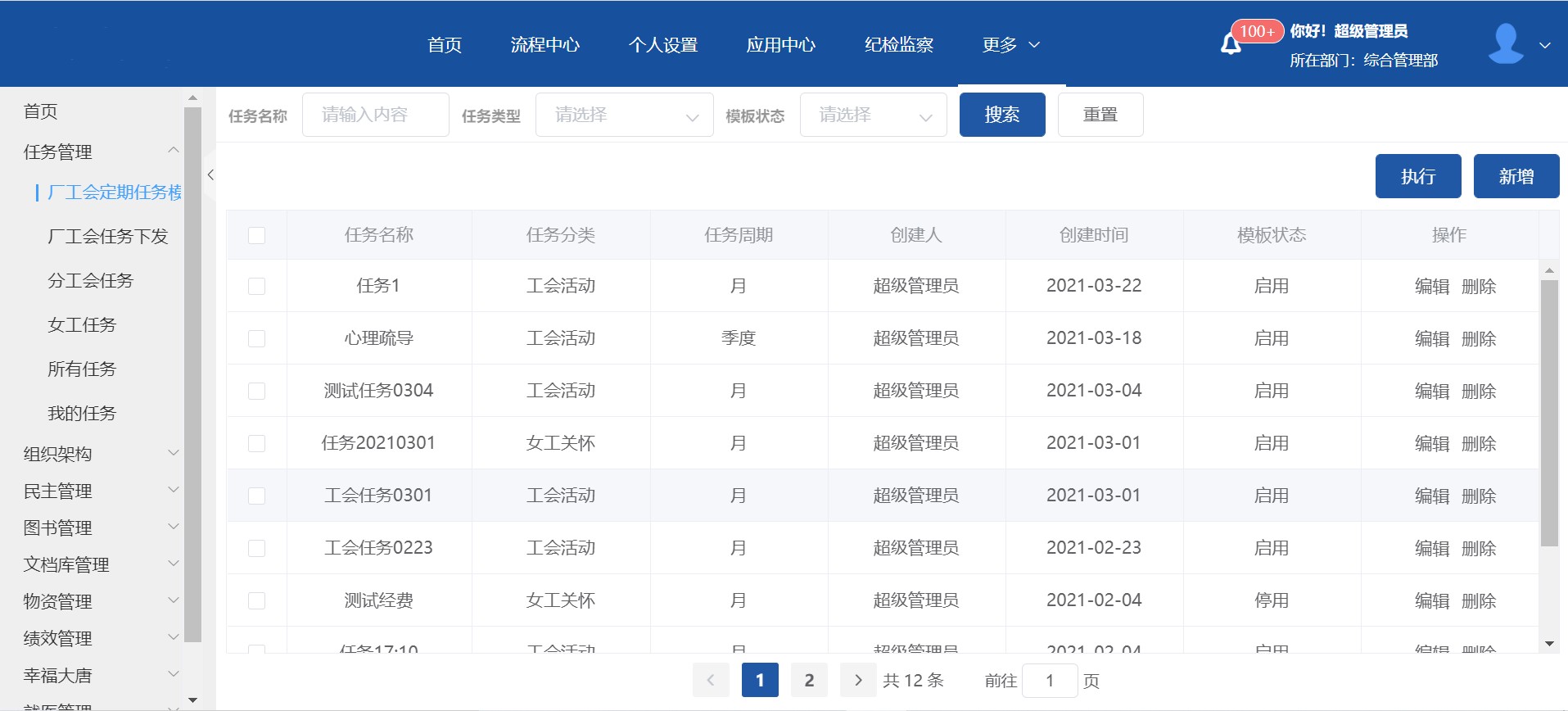 通过信息化手段革新基层工会组织的工作和管理模式,该系统利用先进的流程驱动,将日常工会活动转化为明确的任务形式,并通过智能分配、实时监控和结果反馈,确保每项任务都能得到高效执行和精准落实。