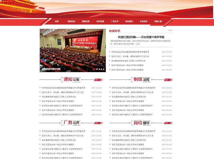 包括通知公告、荣誉展板、组织架构、职工维权、集体合同等功能模块。