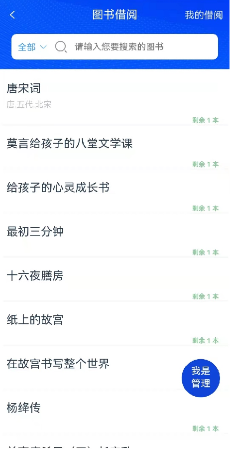 建立图书台账,包括职工书屋书库、图书借阅申请及审批、图书归还、借阅台帐等。基于图书台账,进行图书的借阅管理,主要管理内容包含:借阅人、借阅人联系方式、保管人、借出时间、计划归还时间、实际归还时间、是否超期、是否破损等。