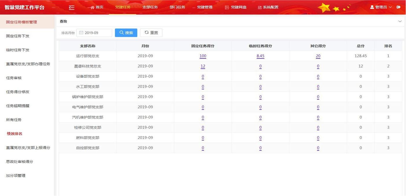 党建管理平台在每季度进行管理考核,按照工作标准和要求,平台实现打分考核。避免了人工考核的弊端,更加准确,公正。有效的激励机制,极大的激发了基层党组织创先争优意识,主动结合实际工作,大胆思考、积极创新。
