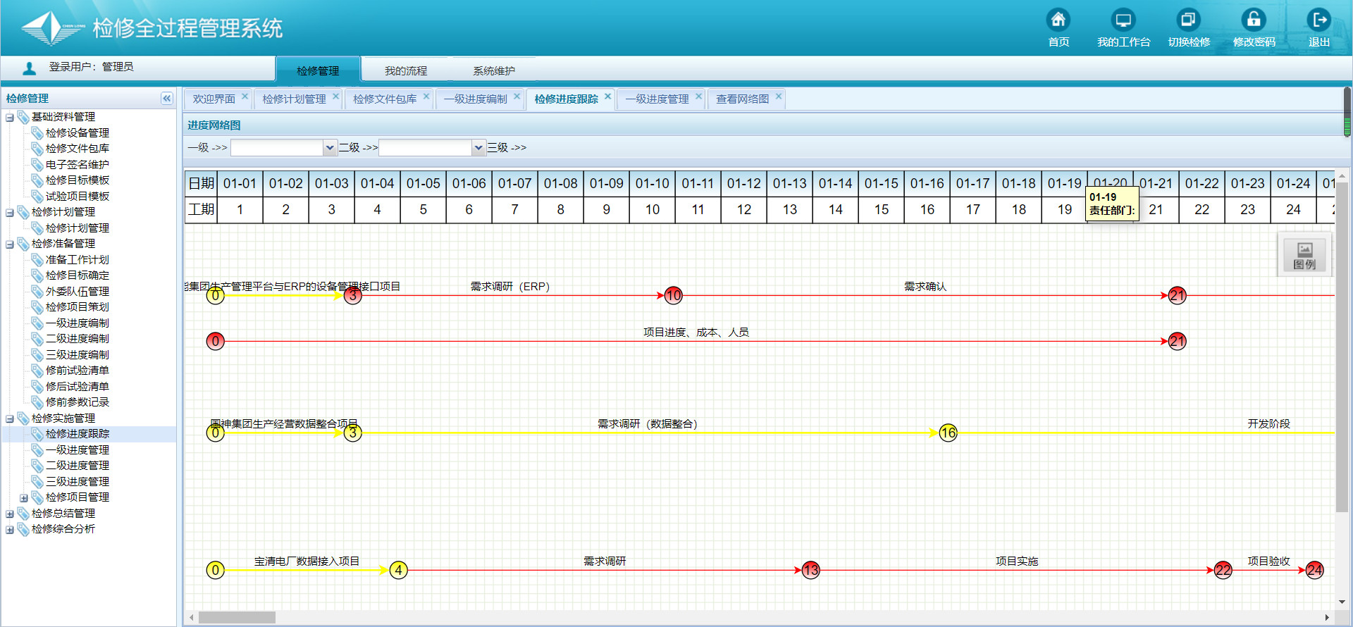 建设检修技改标准化管理系统,实现对下属发电企业的检修、技改工作从项目策划、核准、审批,到项目作业前准备,到项目作业过程管控,到项目作业验收及总结进行一体化全过程管理,以及对项目质量、作业安全、外委团队等实现精细化管控,可以有效提高公司及下属发电企业的检修、技改管理平台。